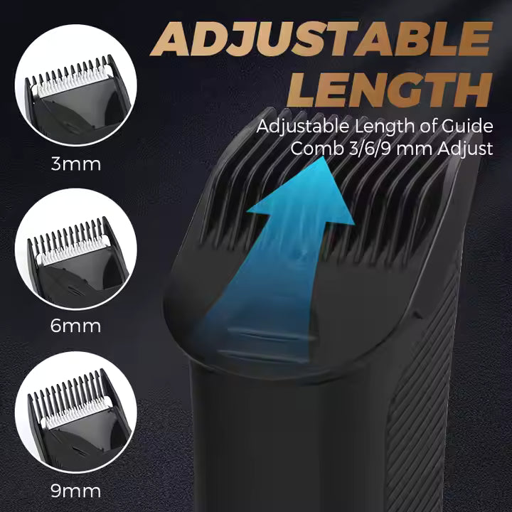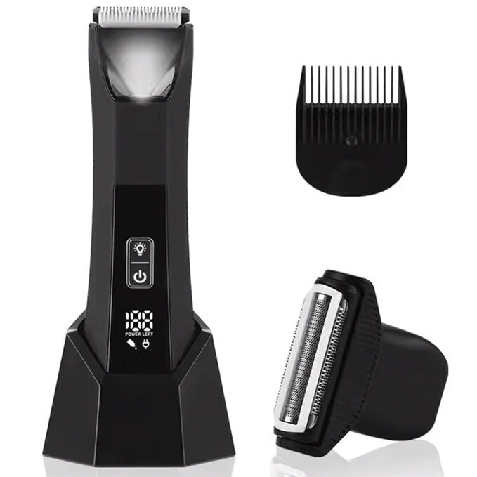 Glenclip Pubic & Body Hair Trimmer for Men, Electric Ball Trimmer Body shavers for Men, Hypoallergenic Ceramic Blade, Waterproof Wet/Dry Groin & Pubic Shaver Groomer, 20 Times Usage (Black). The ultimate groin & body hair trimmer made specifically for men. Includes two Interchangeable SkinSafe Blade Heads: A Trimmer Blade & Foil Blade. One fixed-length comb at 1.4mm and two adjustable combs ranging from 2-12mm, USB-C cable, and a travel pouch. Our trimmer is USB-C and wireless charging compatible.